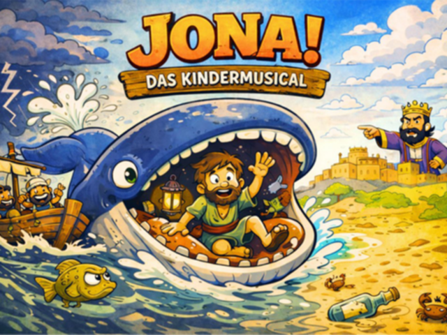 Wir bringen ein Musical zur Aufführung, das Dieter Wagner und Daniel Hess geschrieben haben. Es erzählt die unglaubliche Geschichte von Jona und seinem waghalsigen Abenteuer.